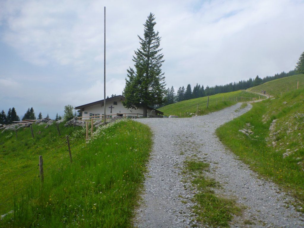 links dem Asphaltweg steil bergauf folgen